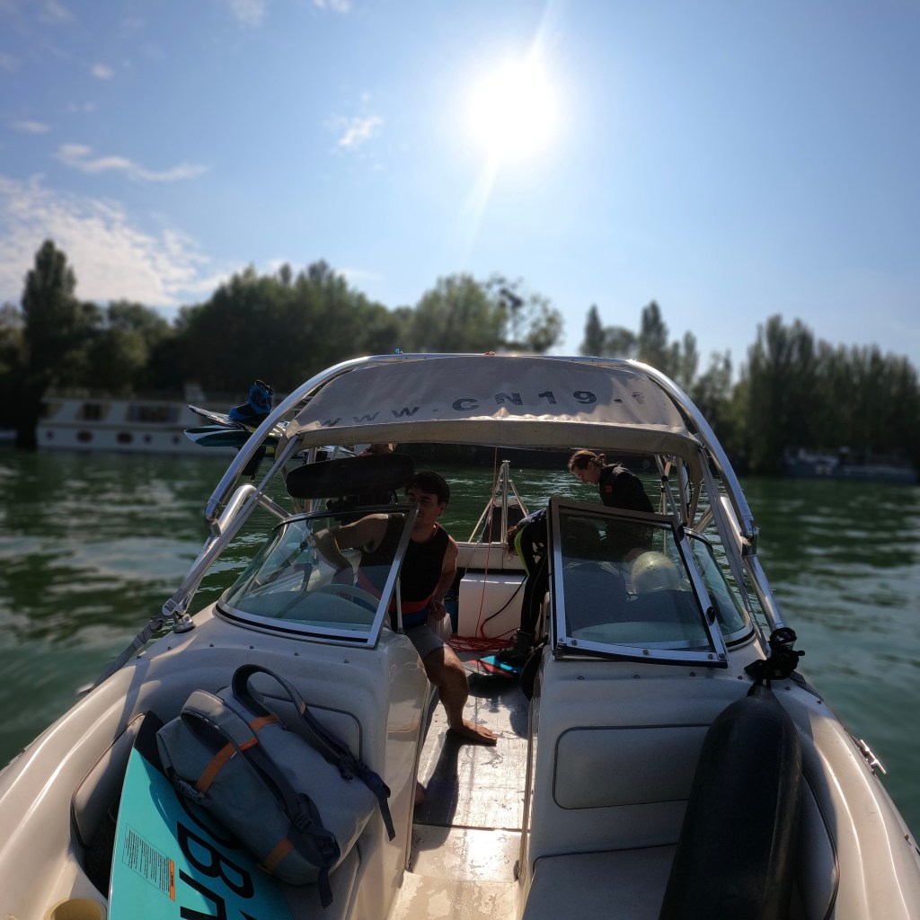 Nous pratiquons sur une zone autorisée à la pratique des sports nautiques et à la vitesse : entre les Ponts de Saint Cloud et de Suresnes